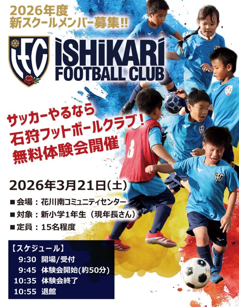 - ⚽️新1年生あつまれ!石狩FCスクール 春の無料体験会のお知らせ⚽️