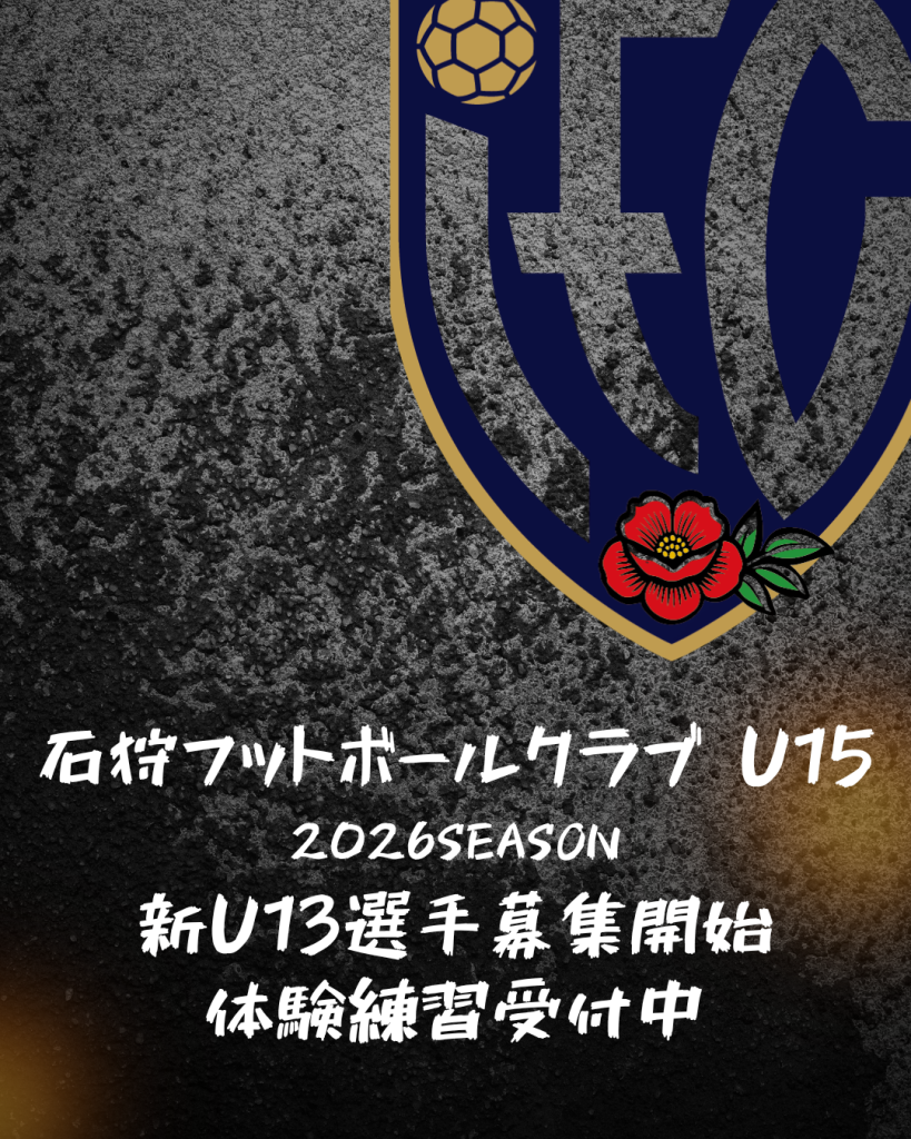 石狩フットボールクラブ U15では、2026年度新中学1年生を対象とした体験練習を受け付け中です!!