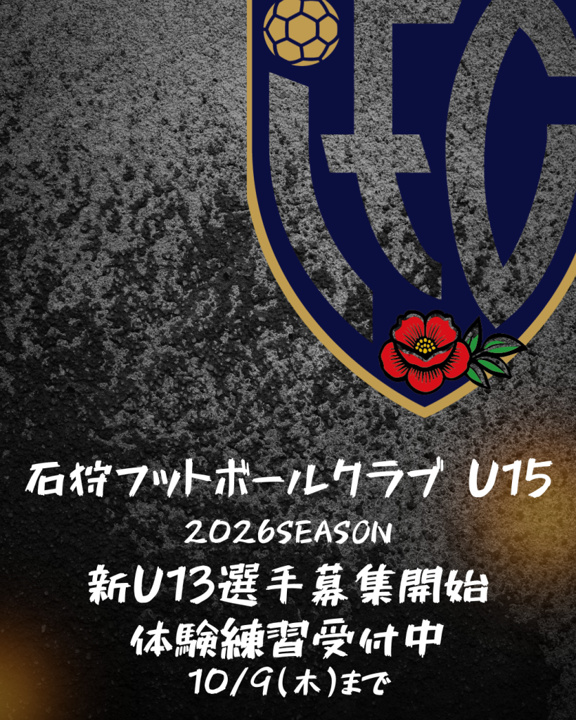 石狩フットボールクラブ U15では、2026年度新中学1年生を対象とした体験練習を受け付け中です!!
